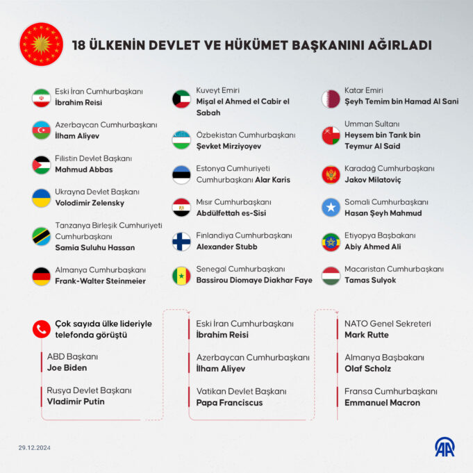 • Cumhurbaşkanı Erdoğan, 2024’te başta Gazze olmak üzere küresel barış için yoğun diplomasi trafiği yürüttü