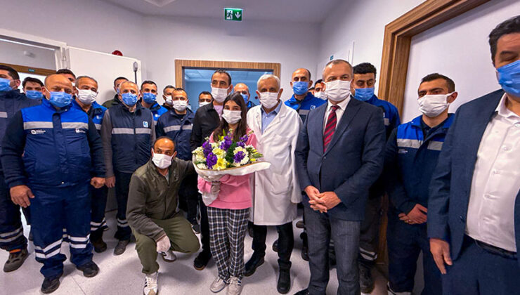 Bir ay sonra taburcu olan Kaya’yı iş arkadaşları çiçeklerle karşıladı.